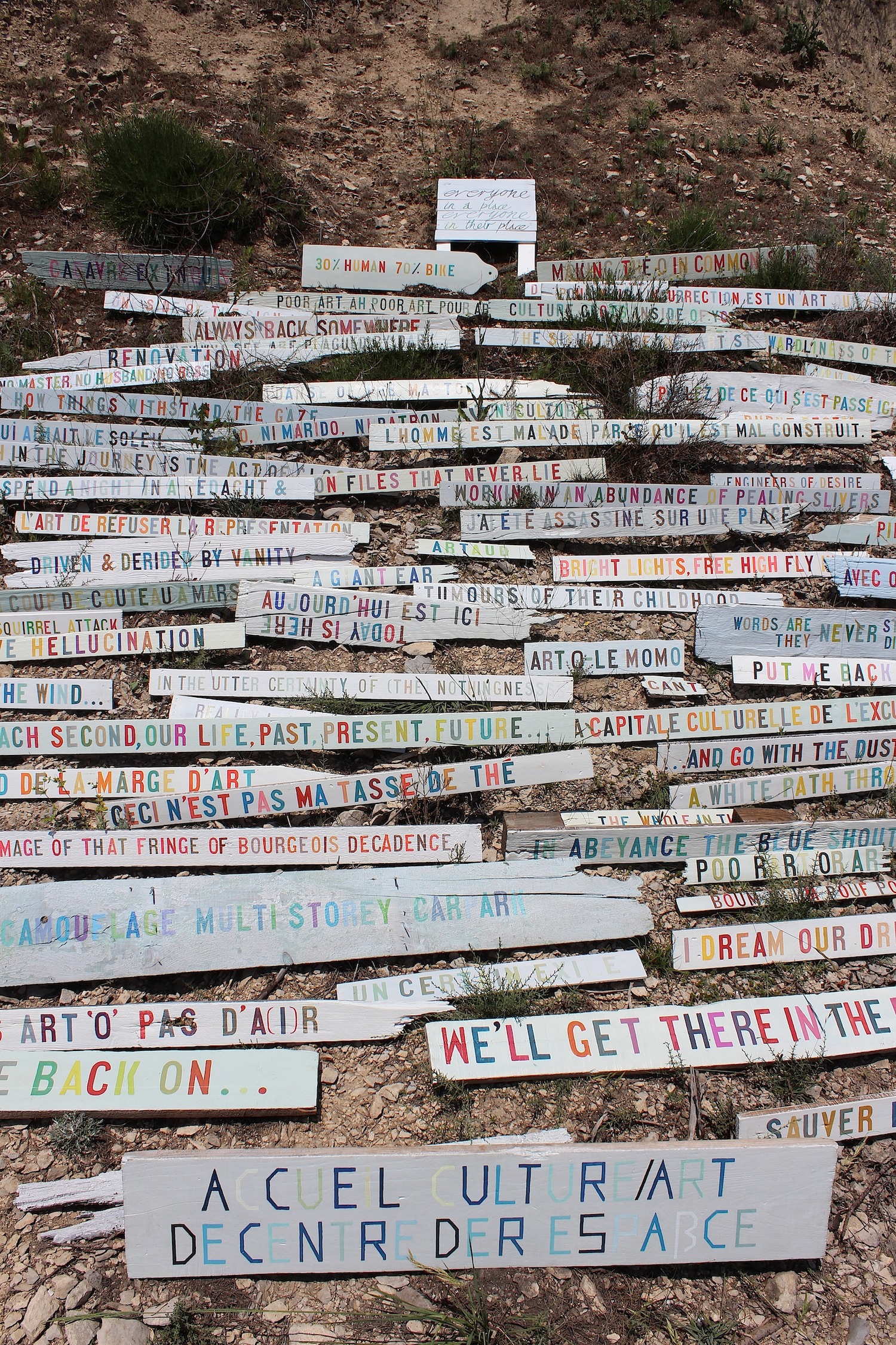In 2013 – (then from 2015-17 along segment 6 InspiralLondon Trail) 200 plus Word-Objects ( projects ) were placed along the GR2013 trail. Word-Objects were borrowed, given and exchanged with over 60 artists and international participants. This project was part of De/tour, a year long exploration of Marseille Provence as European Capital of Culture 2013.